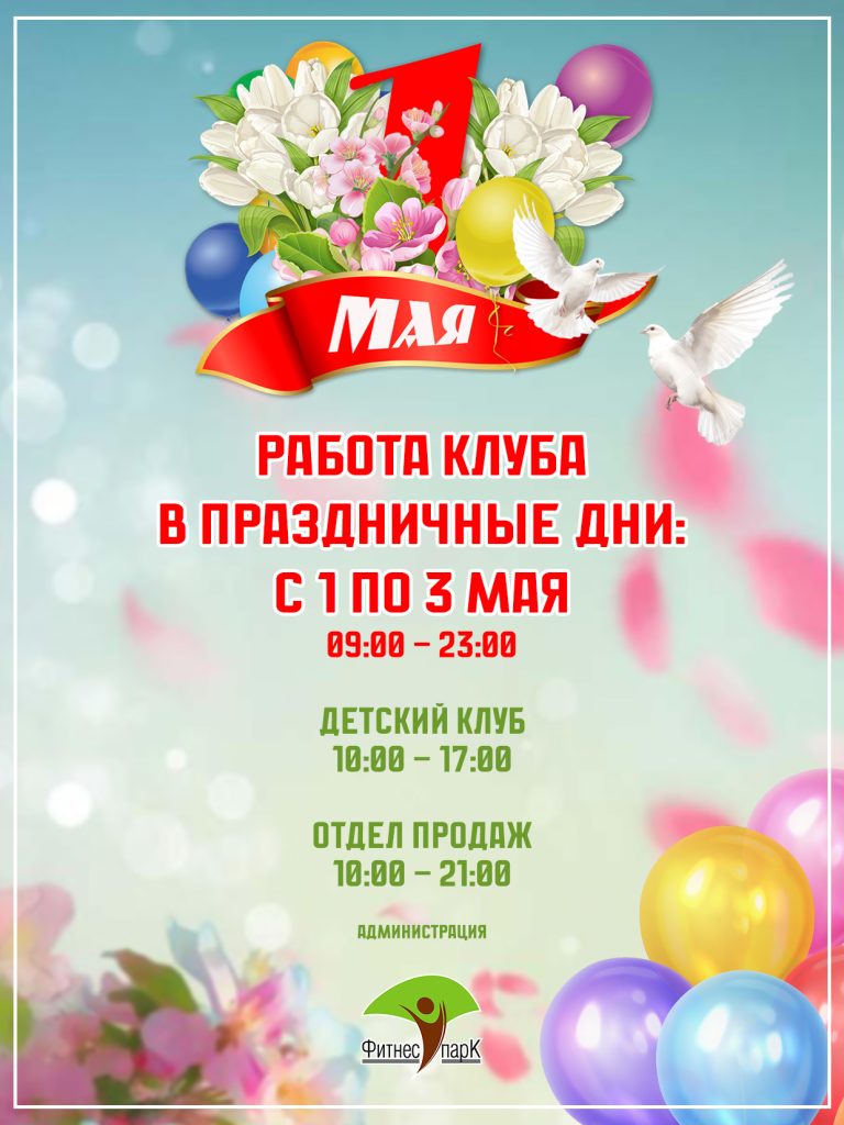Часы работы клуба в праздничные дни с 1 по 3 мая: